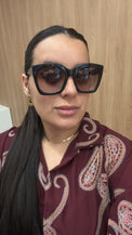 Óculos de sol AC Brazil Quadrado Grande Preto – armação oversized em preto clássico com lentes degradê, perfeito para um visual elegante e sofisticado.