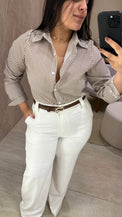 Camisa listrada , com modelagem clássica e toque moderno, ideal para looks sofisticados e versáteis.