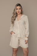 Charmosa e versátil, esta camisa listrada é confeccionada em viscose com linho, garantindo leveza, frescor e toque natural ao vestir. Possui modelagem confortável com mangas longas, bolsos frontais funcionais e fechamento por botões, adicionando um toque clássico e elegante. Forrada para maior conforto e segurança, é a escolha perfeita para composições casuais ou sofisticadas, ideal para dias de trabalho ou momentos de lazer com estilo.