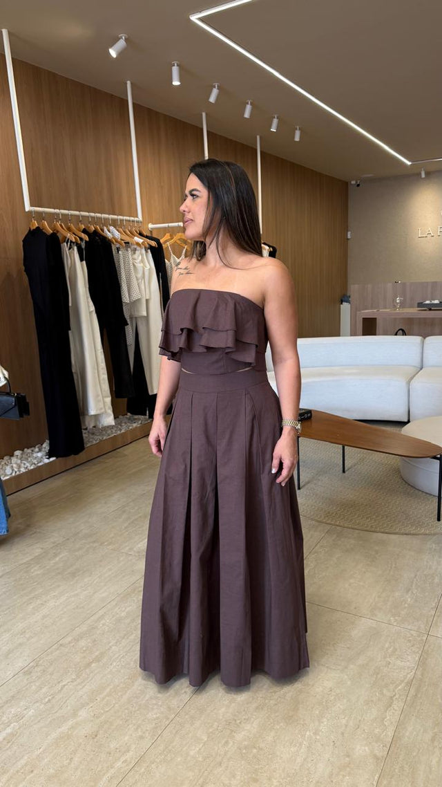 Calça de Sarja com Pregas na Barra