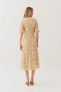 Vestido midi em renda com mangas elegante, feminino e perfeito para ocasiões especiais.