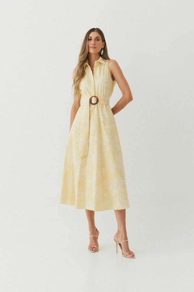 Vestido Curto Linho Bordado C/Sianinha M Natural Det Azul