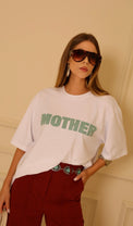 T-shirt oversized com estampa "Mother", modelagem ampla e estilo urbano que une conforto e atitude em uma só peça.