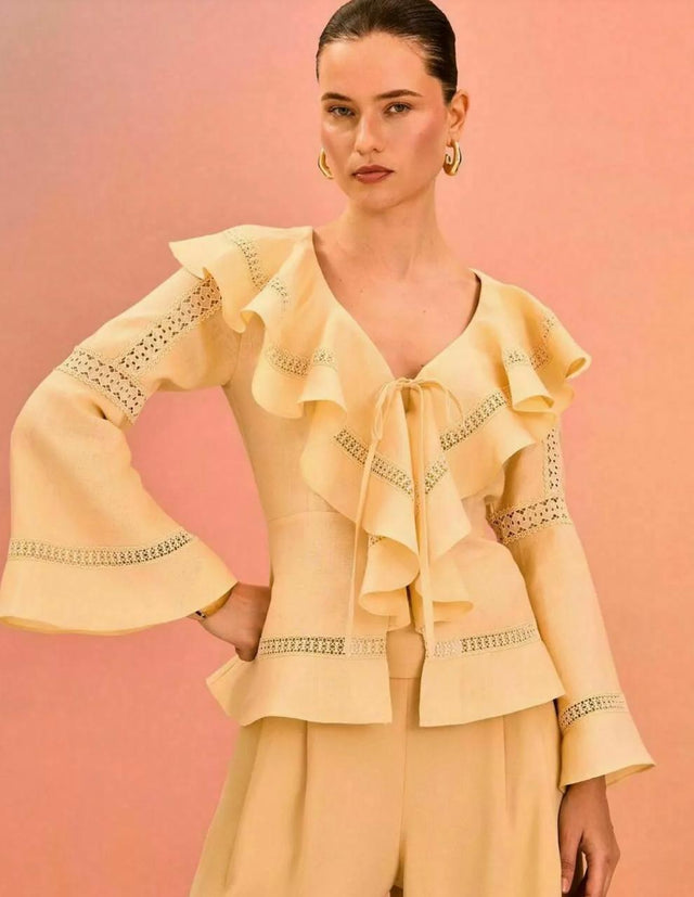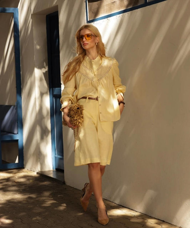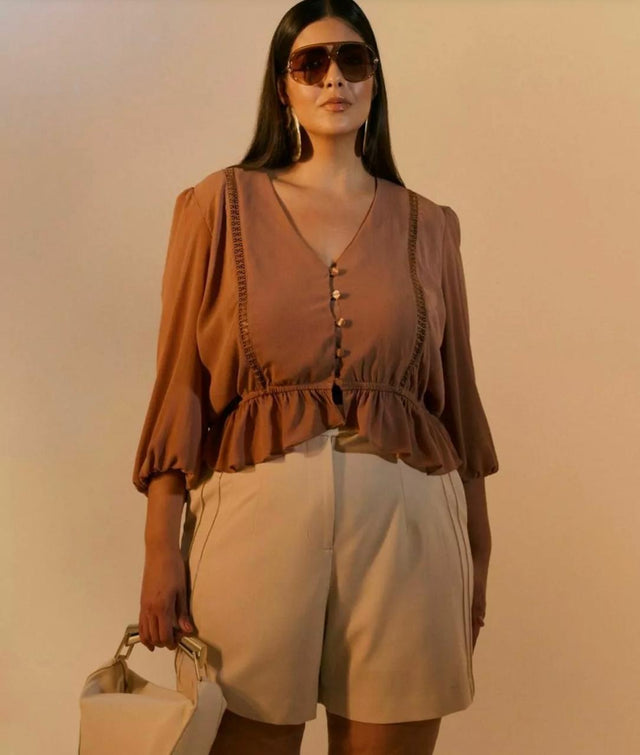 Tecido de alfaiataria, ideal para compor produções que vão do office look a combinações casuais com jeans ou shorts